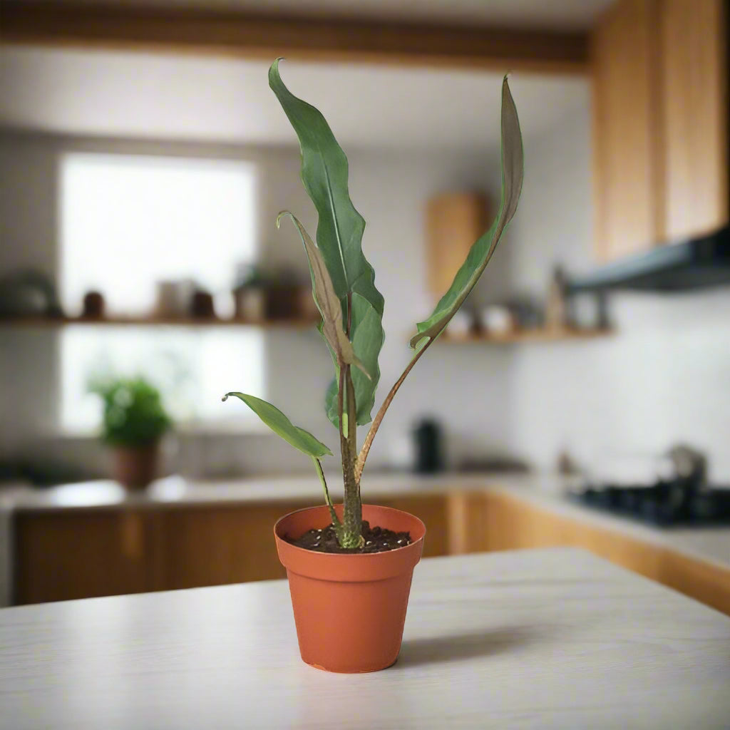 The 'Purple Sword' Alocasia is pure drama and strength! Those sword-like leaves with their purple tones create the most powerful statement. It's perfect for adding that bold, architectural element to any room. This plant doesn't just grow - it conquers space with its dramatic presence!
