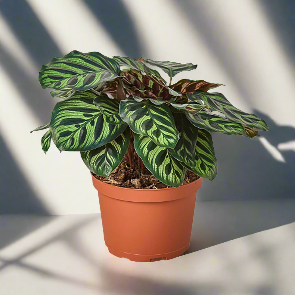 Well hello there, peacock admirer! Meet the absolutely beautiful Calathea Makoyana - also known as the Peacock Plant - a prayer plant so stunning with its feather-like patterns and translucent beauty, it's like having your own peacock displaying its magnificent plumage in graceful movement!
