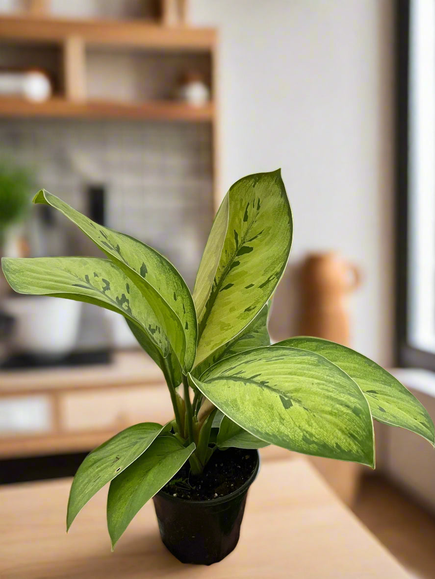 Selby the Homalomena is pure royal magnificence and shield-like elegance! This unique hybrid beauty showcases thick, durable leaves with stunning white and gold colored markings that create the most regal displays. Perfect for low-light spaces and anyone who loves plants with royal protective appeal!