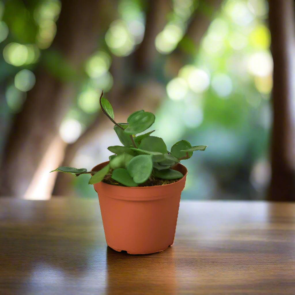 Chelsea the Hoya is pure porcelain magnificence and waxy elegance! This porcelain commonly grown houseplant has long slender vines covered with waxy, deep green leathery leaves sometimes flecked with silver or creamy white. To make this plant appear denser, wrap its sparsely leaved stems around a bamboo trellis. The flowers are star-shaped, in parachute-shaped clusters, with a sweet fragrance and may produce a sticky sap!