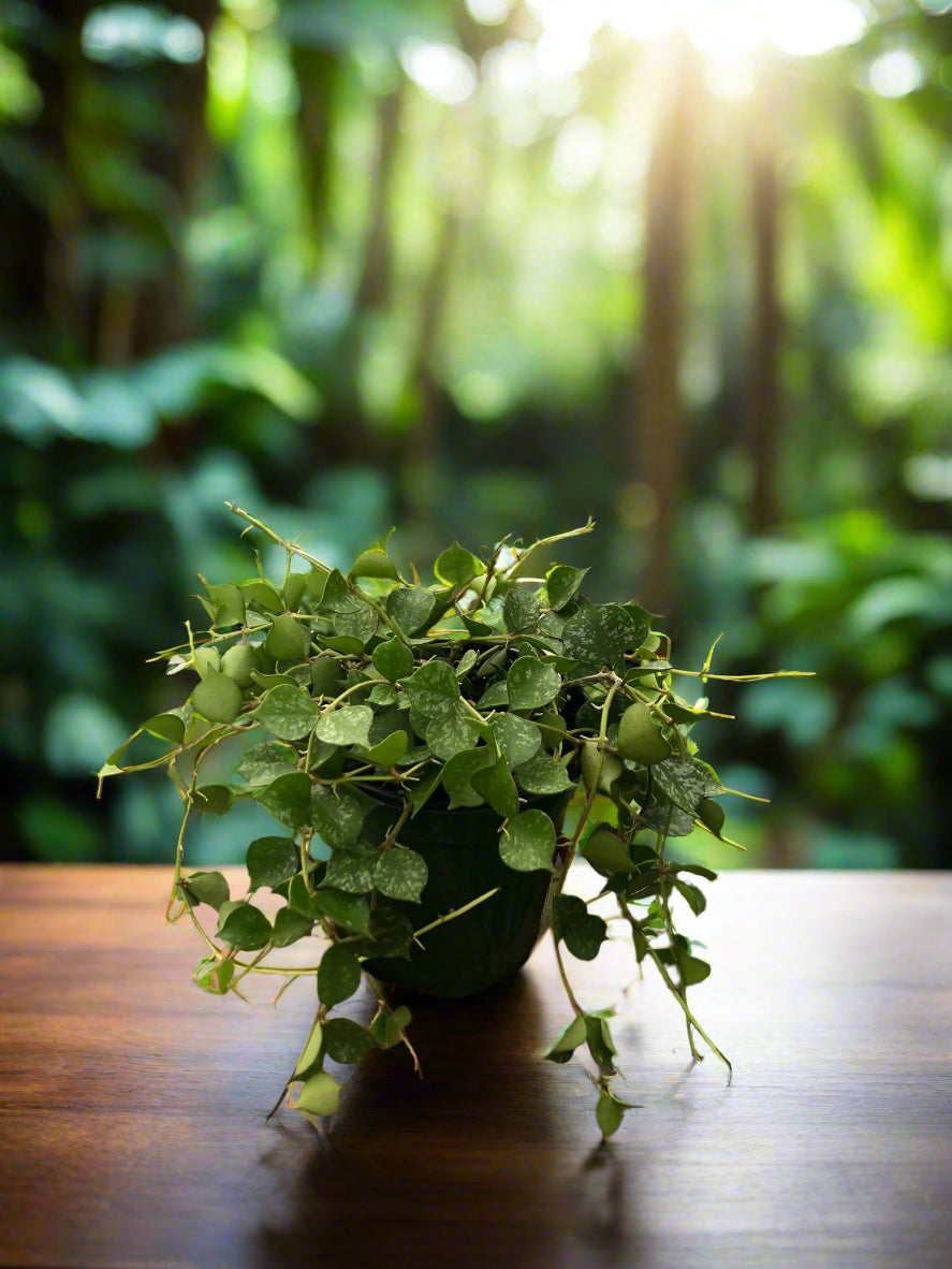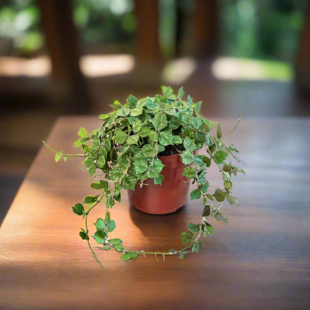 Well hello there, miniature enthusiast! Meet the absolutely adorable Hoya 'Curtisii' - also known as Fung Wax Flower - a miniature trailing beauty so charming with her small round olive green leaves mottled with grey, it's like having your own miniature marvel bringing compact elegance and trailing sophistication to your space!