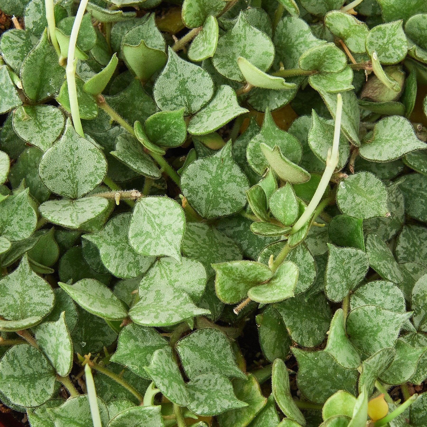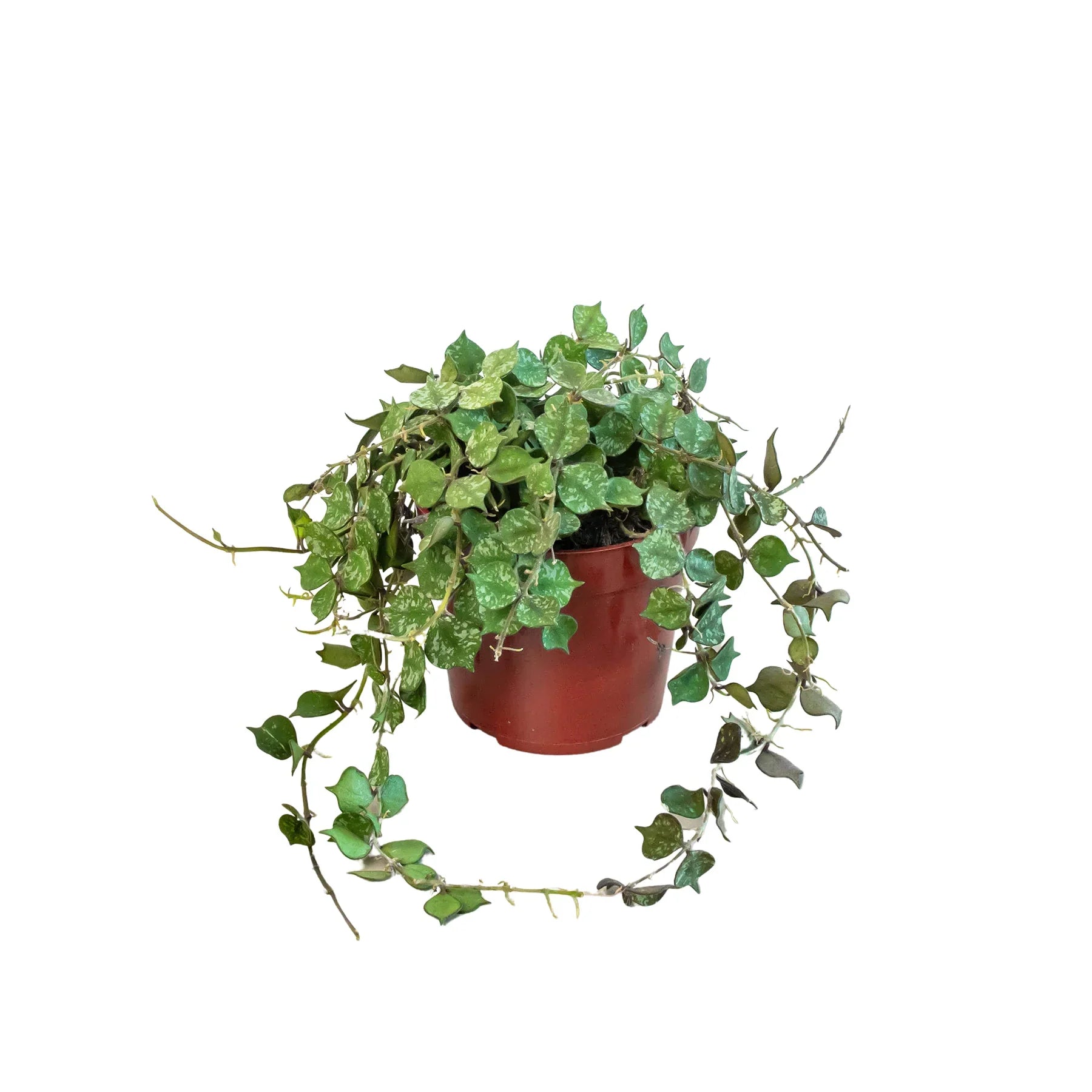 - Description: Hoya curtisii is a miniature trailing hoya. This form of curtisii has small round olive green leaves mottled with grey. The apex is pointed on the thick succulent leaves. This will make a tight mat over the soil surface and then hang down.