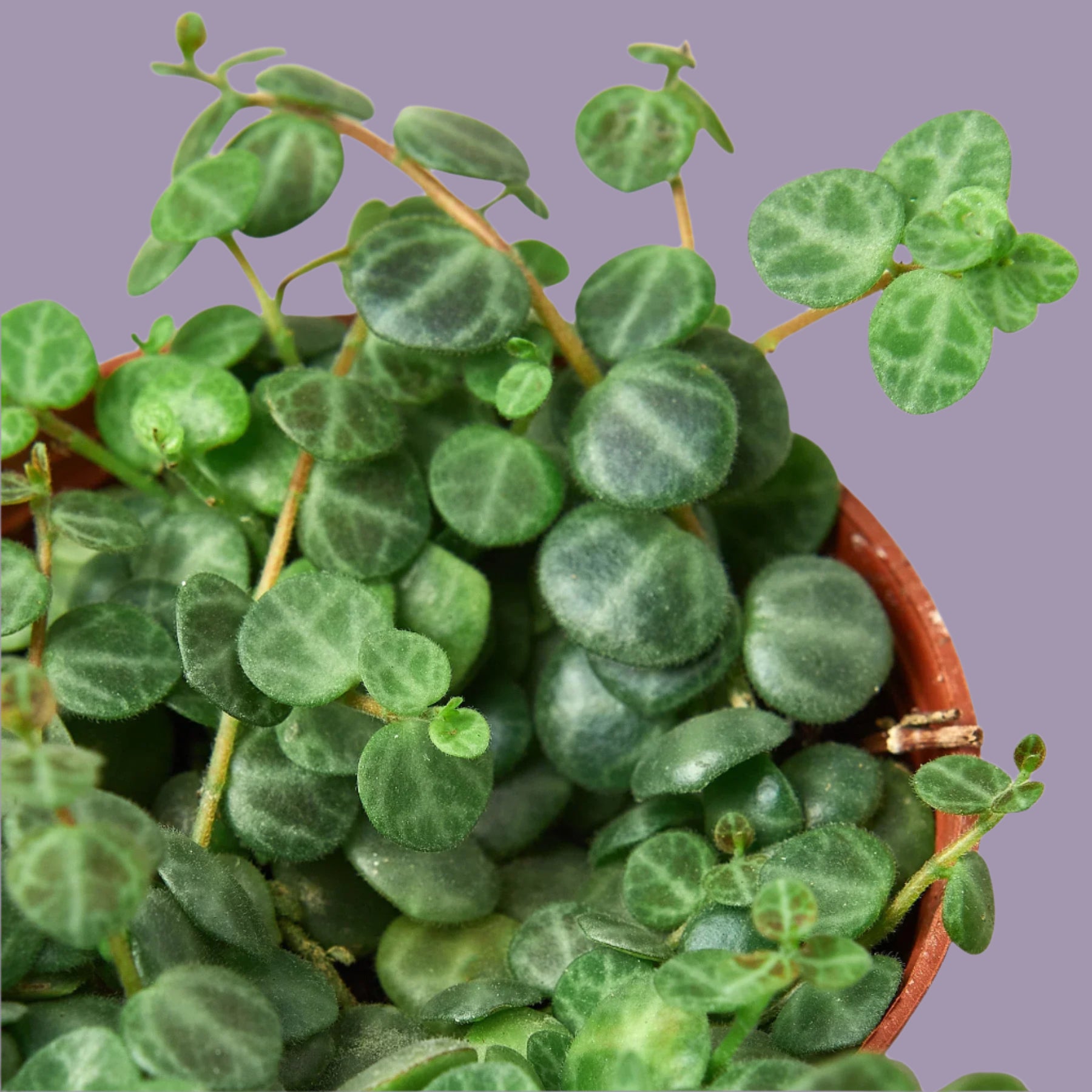 Well hello there, turtle plant lover! Meet the absolutely charming Peperomia Prostrata 'String of Turtles' - a peperomia beauty so charming with her turtle-patterned leaves and trailing appeal, it's like having your own turtle string bringing adorable elegance and minimal-care sophistication to your charming collection!