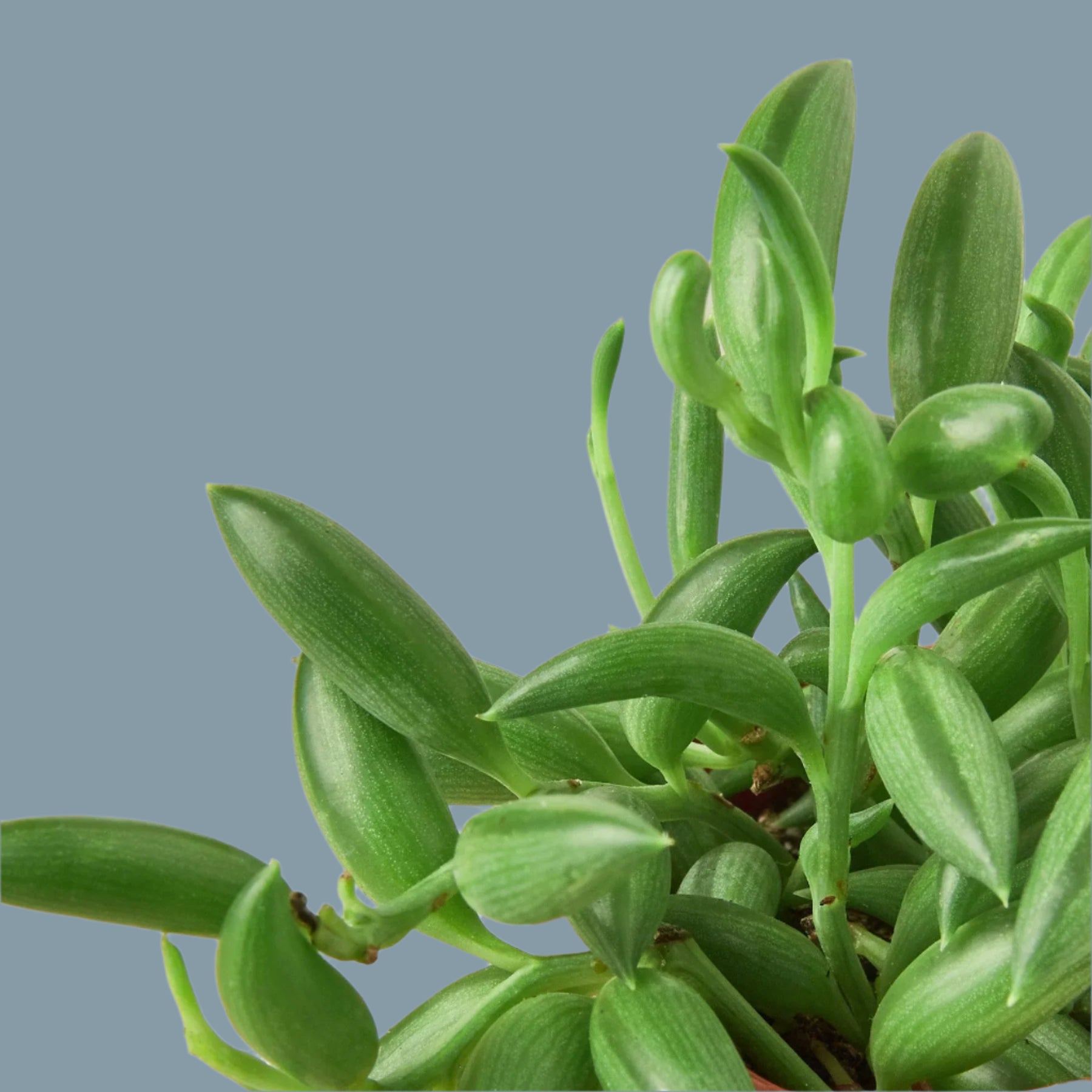 String of Bananas the Succulent is pure trailing magnificence and cascading elegance! This trailing succulent showcases banana-shaped leaves that create the most hanging displays. Perfect for hanging baskets and anyone who loves plants with trailing cascading charm!